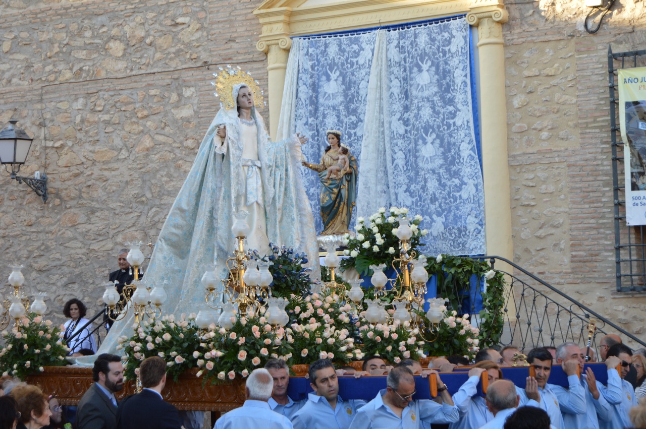 La imagen fue arreglada en su Sede con rosas obsianas y bajada merced a unas patas metálicas con ruedas hasta la iglesia de Santiago donde salió.